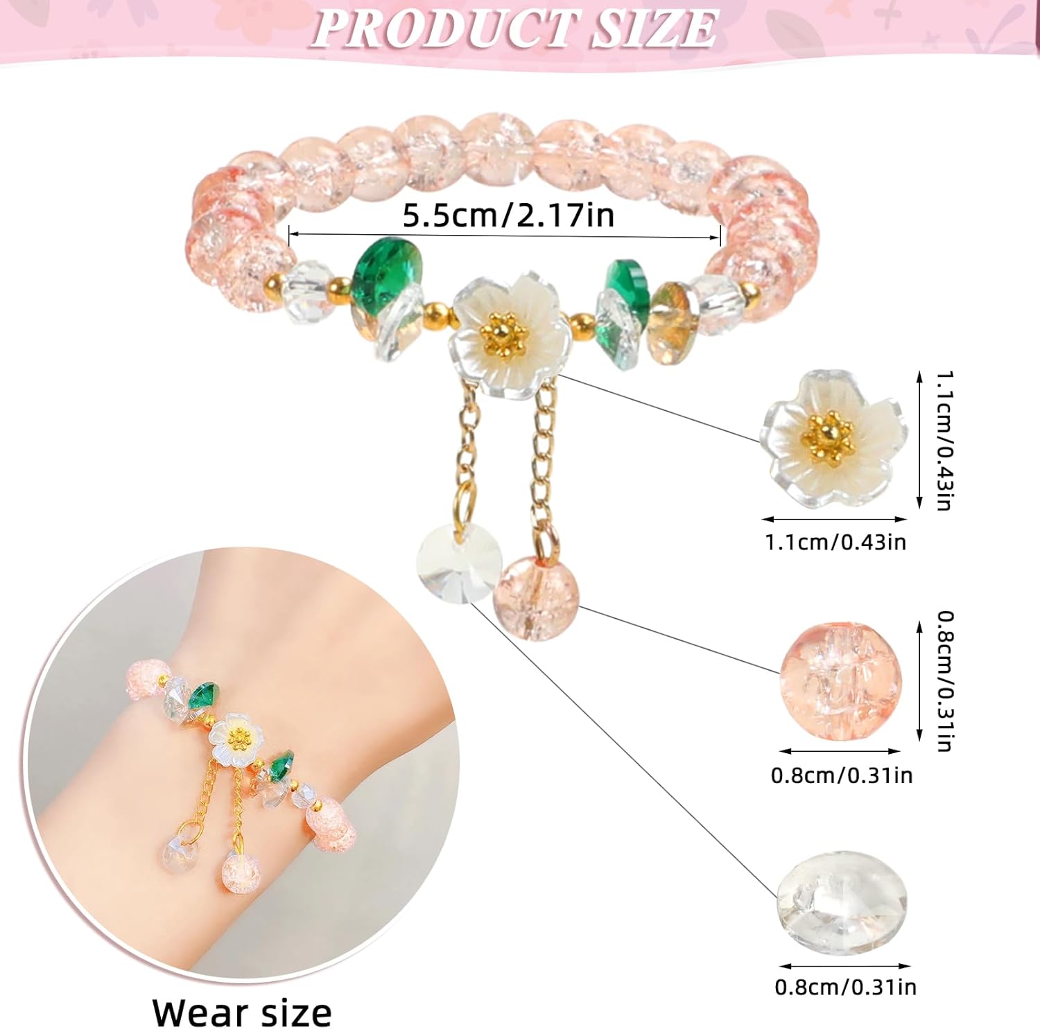 • ♥Material: Made of high quality crystal glass beads. Use a strong elastic cord to connect the structure and comfortable to wear. The size suitable for most women and men.