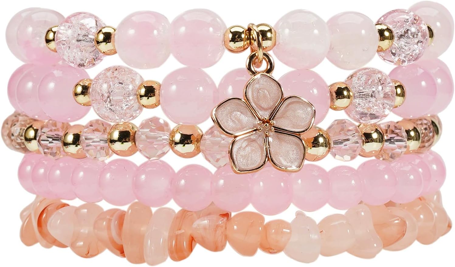 5Pcs Bohemia Multilayer Floewr Crystal Glass Beaded Bracelet Set Colorful Stackable Flower Beaded Friendship Stretch Bracelets for Women Men Summer Beach Boho Hawaii Holiday Jewelry Gifts